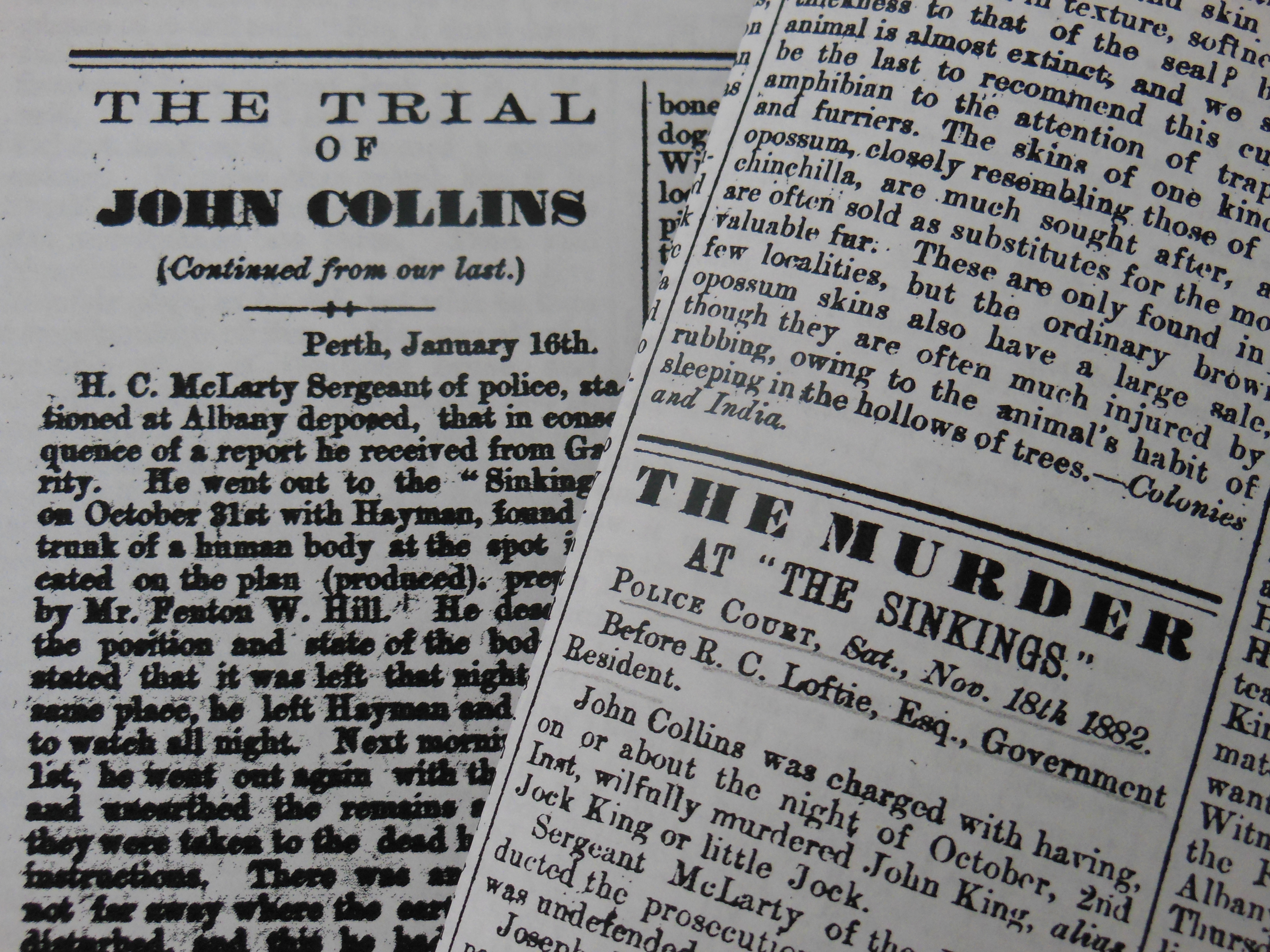 The inspiration for The Sinkings came from reports (recorded in many sources) that the remains of a murdered former convict known at the time of his death, in 1882, as Little Jock were initially identified at autopsy as those of a woman. This ‘fact’ comes from the historical record and is in that sense ‘real’.