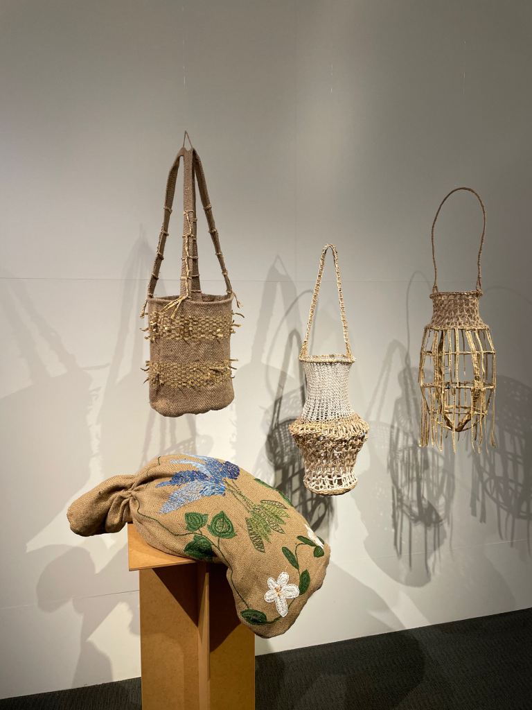I recently had the pleasure of visiting the exhibition at the Bunbury Regional Art Gallery. Here are Annette Davis’s artist statement and her fascinating work, Carrier Bags